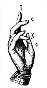 A Greek abbreviation meaning Jesus Christ; along with a specific hand gesture. That gesture forms the letters.