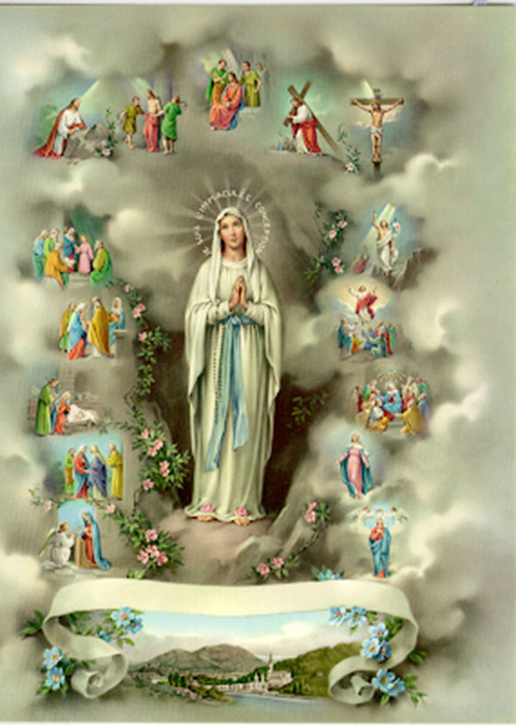 Gebed: Heilige Maria, Koningin des hemels, Koningin der Vrede en Koningin van de Heilige rozenkrans, bid voor ons. Bescherm al Uw kinderen tegen de gevaren in de Wereld en het kwade van de duivel.